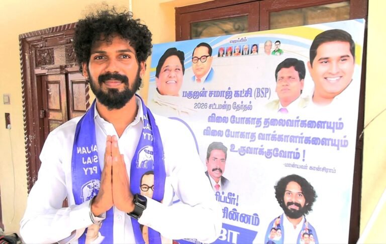 தாம்பரம் தொகுதியில் போட்டியிடும் பகுஜன் சமாஜ் கட்சியின் வேட்பாளர் எம்.ராஜா அவர்களுக்கு மக்கள் அமோக வரவேற்பினை அளித்தனர் Read More » 18/04/2026