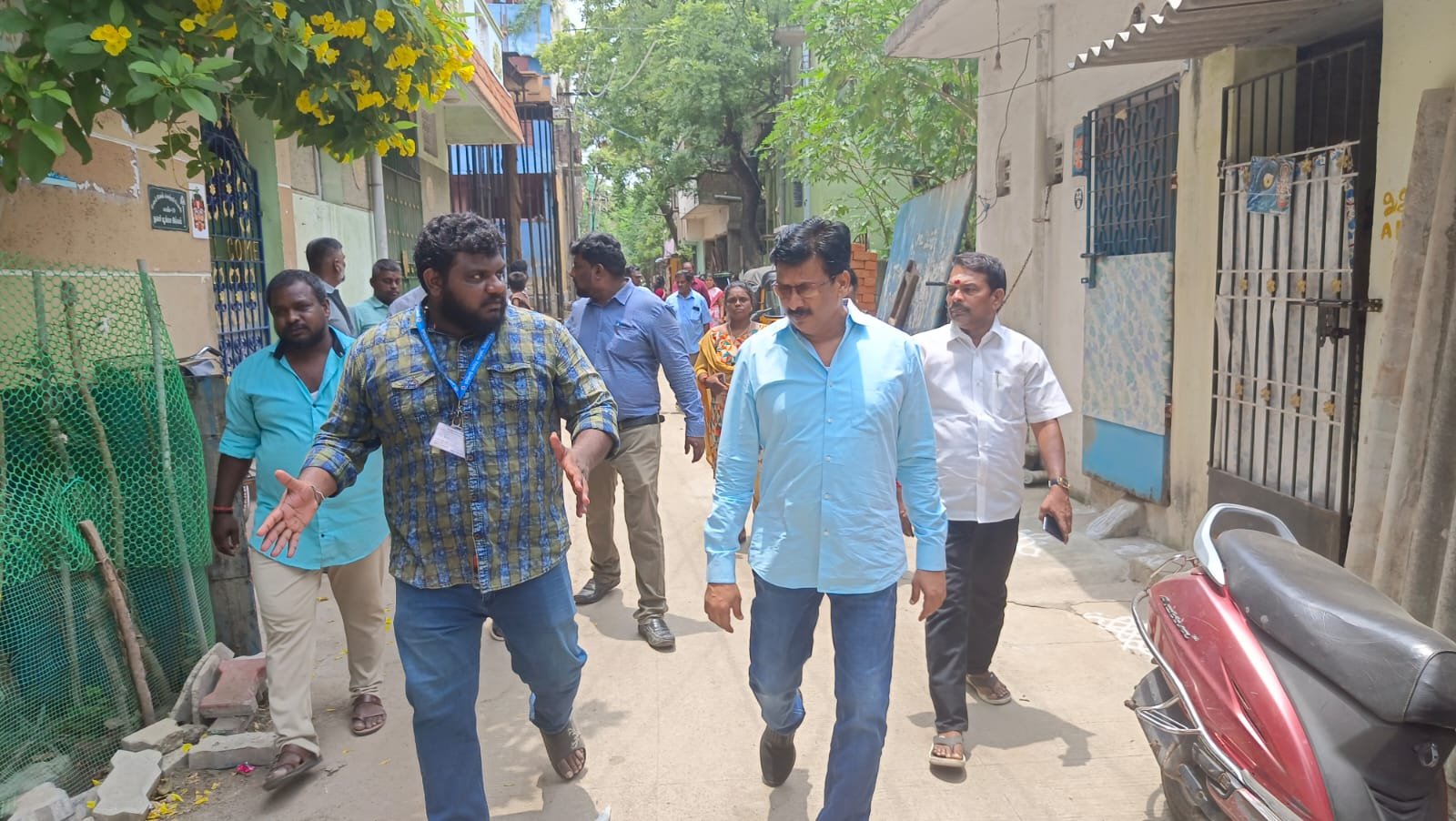 அடையாறு ஆற்றின் கரையோர தடுப்புசுவர் அமைக்க 138வது வார்டில் உள்ள ஆற்றுப்படுகை முதல் தங்கவேலு தெரு கரையோரம் வரை CORP AE, PWD, SLUMBOARD அதிகாரிகள் கணக்கெடுக்கும் விபரங்களை பகுதி செயலாளர், 138வது வார்டு கவுன்சிலர் கேகண்ணன் நேரில் சென்று கேட்டறிந்தார்.