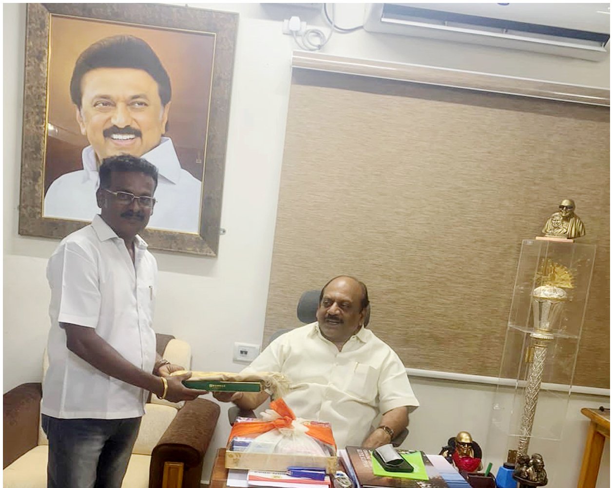 காஞ்சிபுரம் வடக்கு மாவட்ட தி.மு.க. சிறுபான்மையினர் நல உரிமைப்பிரிவு மாவட்ட துணை அமைப்பாளராக நியமனம் செய்யப்பட்டுள்ள டி.ஆரோக்கியராஜ், சிறு மற்றும் குறு நடுத்தர தொழில் நிறுவனங்களின் துறை அமைச்சர் தா.மோ.அன்பரசனை நேரில் சந்தித்து வாழ்த்து பெற்றார்.