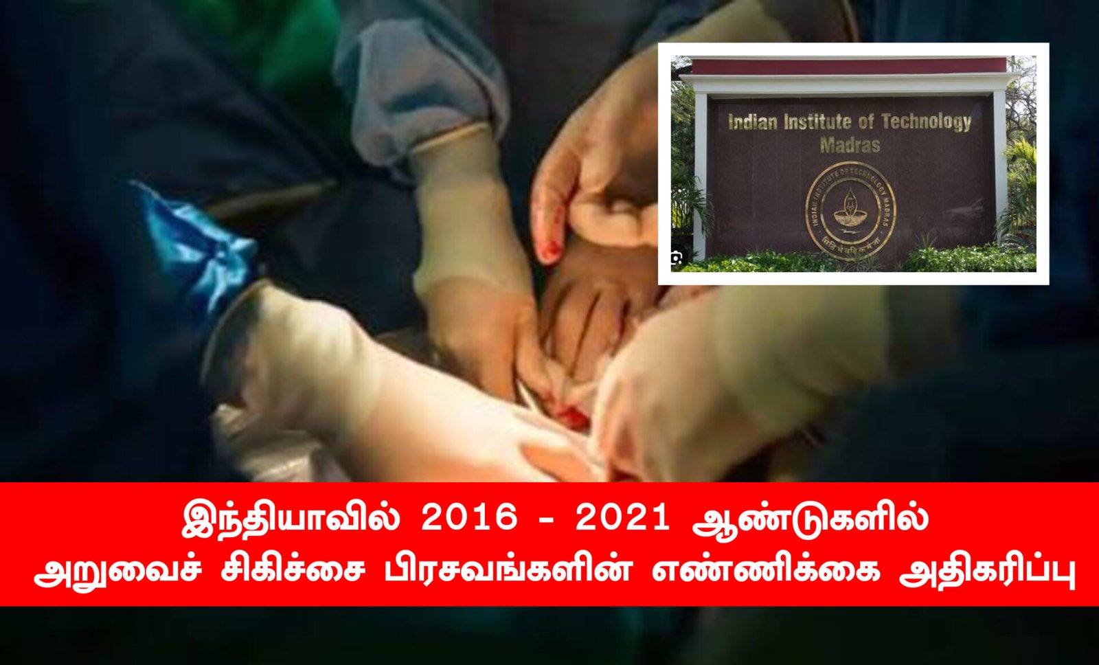 சென்னையில் உள்ள இந்திய தொழில்நுட்பக் கழக (ஐஐடி மெட்ராஸ்) ஆராய்ச்சியாளர்கள் நடத்திய ஆய்வில், 2016-2021 ஆண்டுகளுக்கு இடையே நாடு முழுவதும் நடைபெற்ற அறுவைச் சிகிச்சை முறையிலான பிரசவங்களின் (சி- செக்சன்) எண்ணிக்கை திடீரென கடுமையாக உயர்ந்திருப்பதைக் கண்டறிந்துள்ளனர்.