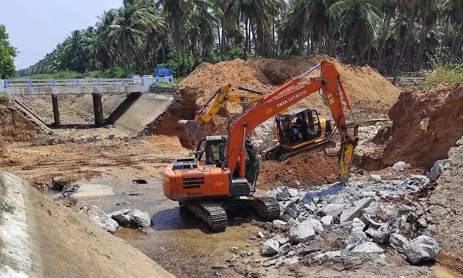 உடுமலை அருகே தளி வாய்க்கால் சுரங்கப்பாதை இடித்து அகற்றம்