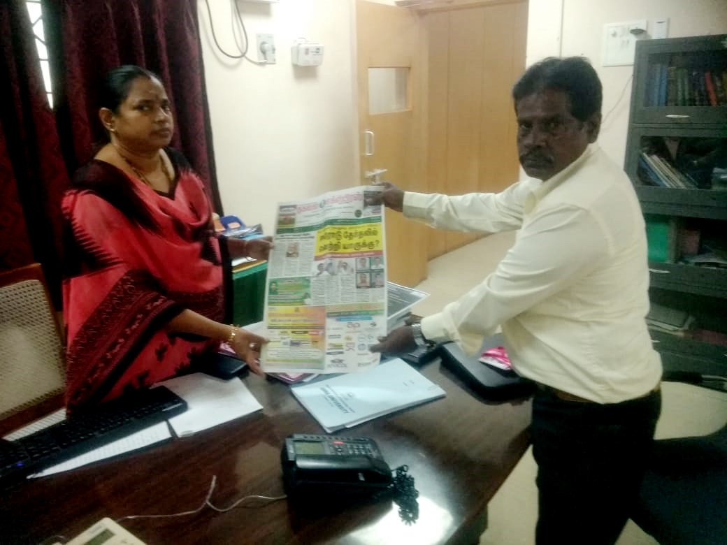 சென்னை கிண்டி அண்ணா பல்கலைக்கழகத்திற்கு உட்பட்ட சென்னை குரோம்பேட்டை மெட்ராஸ் இன்ஸ்டியூட் ஆப் டெக்னாலஜி கல்லூரி டீன் சார்பாக அவரது உதவியாளர் அகிலாவிடம் தகவல் எக்ஸ்பிரஸ் நடுநிலை மாத இதழை செங்கல்பட்டு மாவட்டம் தலைமை செய்தியாளர் ஆர்.எம்.அருண்குமார், மரியாதை நிமித்தமாக வழங்கினார்.