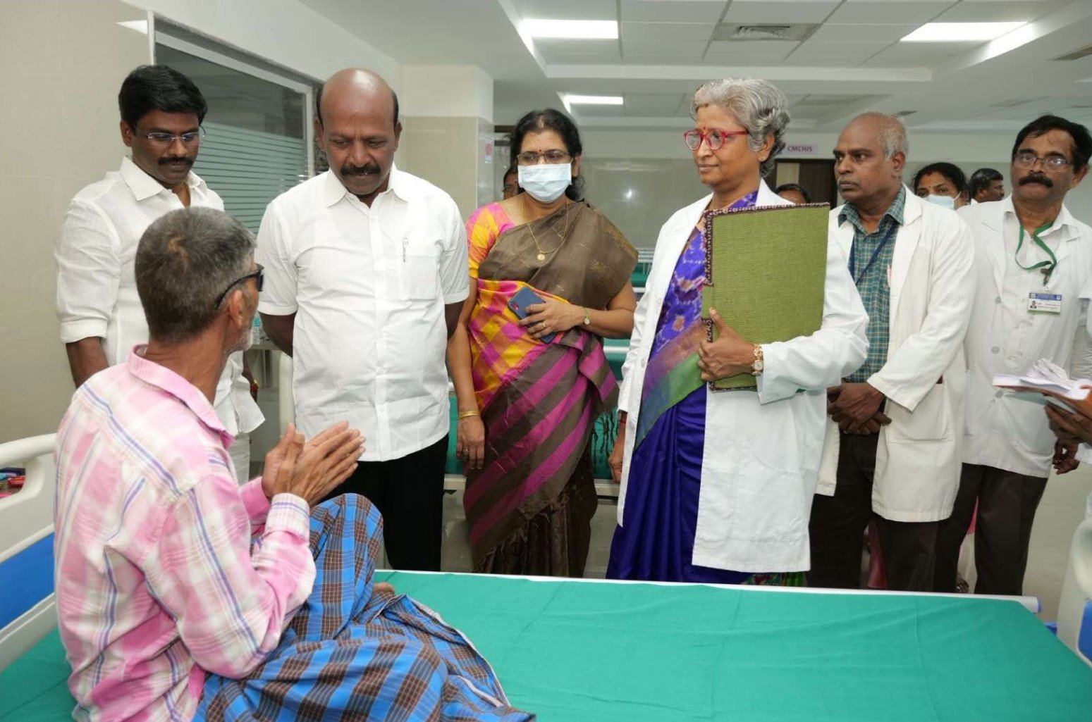 எழும்பூர் அரசு கண் மருத்துவமனையில், மெட்ராஸ்-ஐ கண் அழற்சிநோய் வார்டினை ஆய்வு மேற்கொண்டார். இந்நிகழ்வில் எழும்பூர் சட்டமன்ற உறுப்பினர் இபரந்தாமன், மருத்துவக் கல்வி மற்றும் ஆராய்ச்சி இயக்குநர் இரா.சாந்திமலர், எழும்பூர் அரசு கண் மருத்துவமனை இயக்குநர் தங்கராணி மருத்துவர்கள் மற்றும் செவிலியர்கள் உடனிருந்தனர்