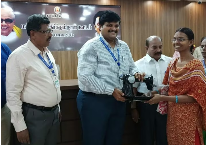 பின்னர் மாற்றுதிறனாளிகள் நலத்துறைத்துறை சார்பில் 1 பயனாளிகளுக்கு காதொலி கரூவிகளும், 2 பயனாளிகளுக்கு தலா ரூ.540 மதிப்பீட்டில் ரூ.1080 மதிப்பிலான ஊன்றுகோலும், 1 பயனாளிக்கு ரூ.7900 மதிப்பிலான சக்கர நாற்காலியும், வருவாய் மற்றும் பேரிடர் மேலாண்மைத்துறை 1 பயனாளிக்கு ஆதரவற்ற விதவைச்சான்றும், விதவை தொகைக்கான ஆணைகளையும், பிற்படுத்தப்பட்டோர் நலத்துறையின் சார்பாக 20 பயனாளிகளுக்கு தலா ரூ.6000 மதிப்பீட்டில் ரூ.1,20,000 மதிப்பலான தையல் இயந்திரமும், ஆக மொத்தம் 26 பயனாளிகளுக்கு ரூ.159979 மதிப்பீட்டில் அரசு நலத்திட்ட உதவிகளை மாவட்ட ஆட்சித் தலைவர் பிரபு சங்கர் வழங்கினார்.