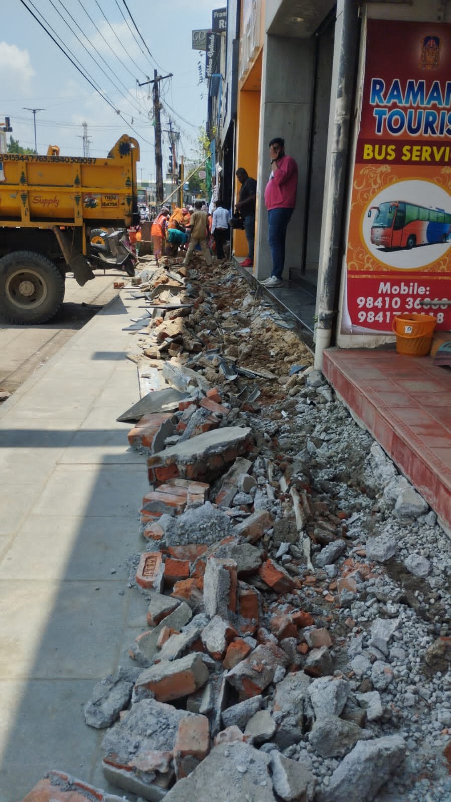 குரோம்பேட்டை இரயில் நிலையம் GST ரோடு சிக்னல் தாம்பரம் மார்க்கமாக நடைபாதை ஓரமாக இருக்கும் கடைகளின் முன்பகுதி திடீர் என்று முன் அறிவிப்பின்றி இடிக்கப்பட்டதால் அங்குள்ள வியபாரிகள் பதற்றம் அடைந்தனர். இச்சம்பவம் பொதுமக்கள் பரபரப்பாக பேசப்பட்டு வருகிறது.
