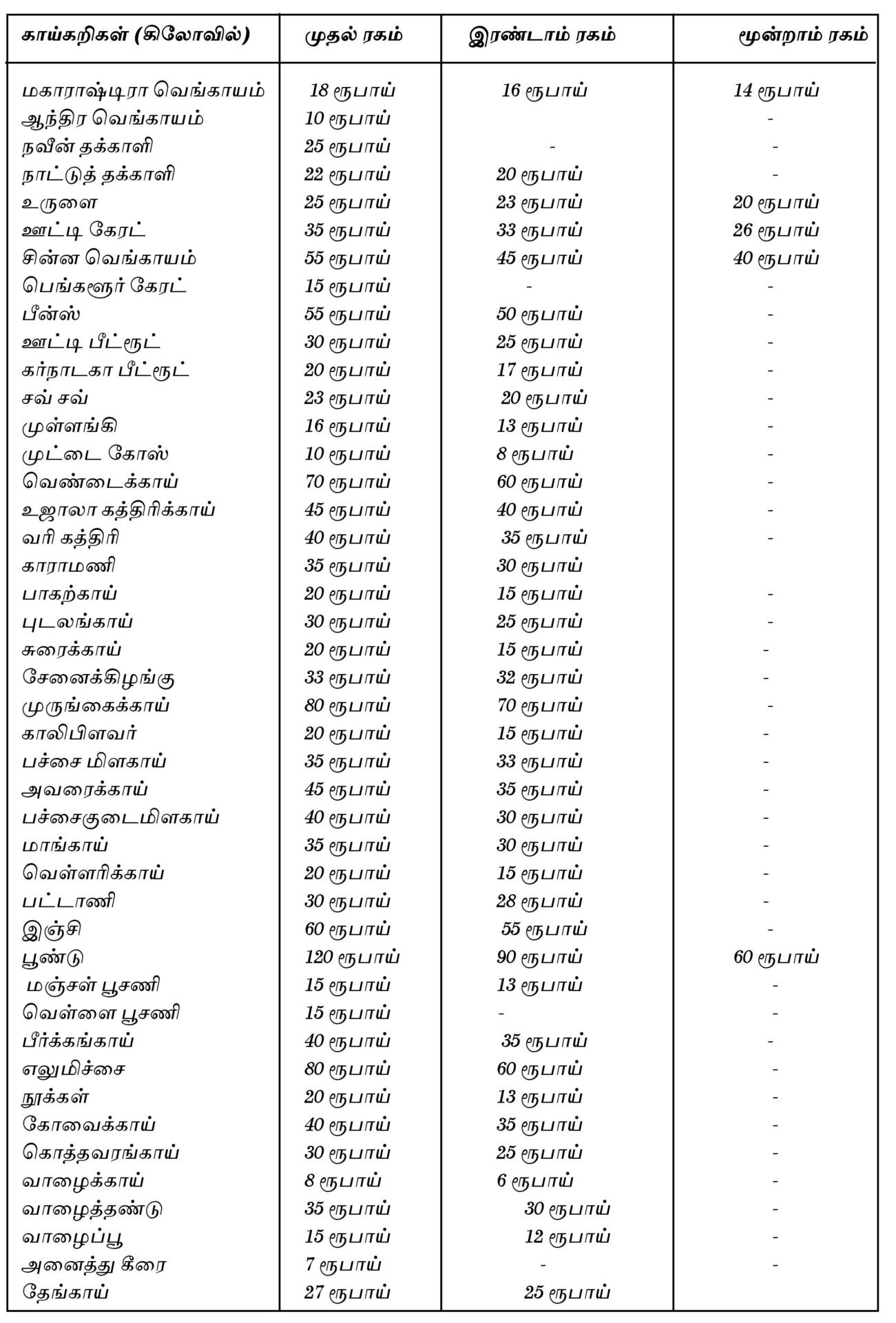 கோயம்பேடு மார்க்கெட்டில் இன்றைய காய்கறி விலை விவரம்