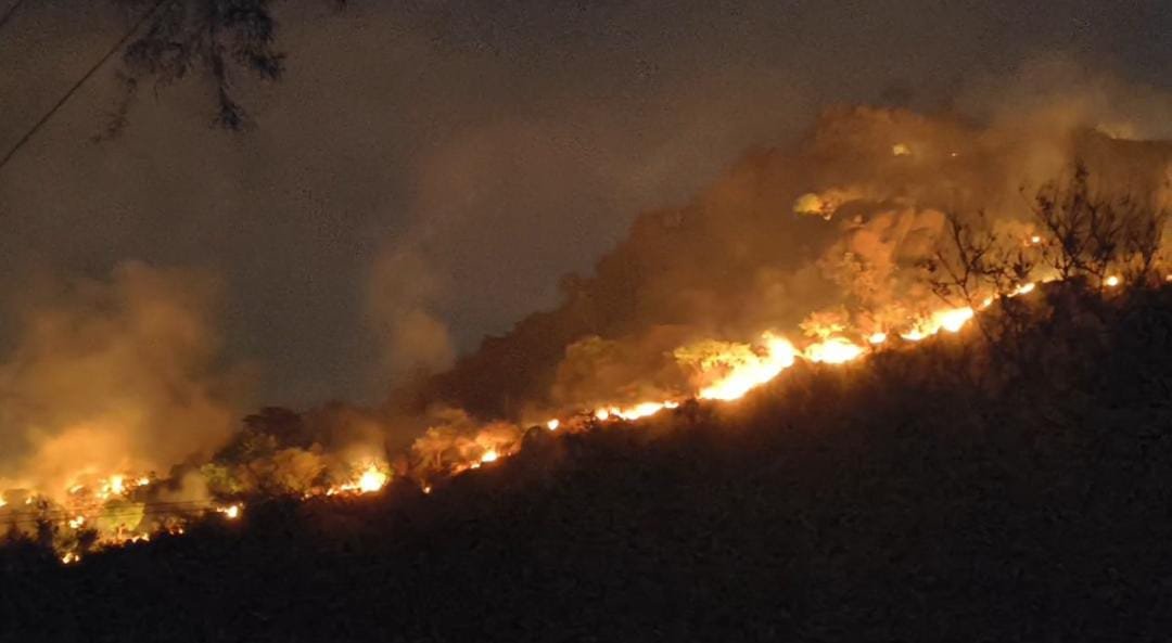 வேலூர் மாவட்டம் சத்துவாச்சாரி வ.உ.சி நகர் அருகே உள்ள ராஜாகோட்டை மலையில் திடீரென காட்டுத்தீ ஏற்பட்டுள்ளது. வெயிலின் காரணமாக மலையில் காய்ந்திருந்த புற்களால் தீ மள மளவென மலை முழுவதும் பரவியது.