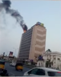 இந்தநிலையில் எல்ஐசியின் மாடியில் வைக்கப்பட்டுள்ள பெயர்பலகையில் இன்று திடீரென தீப்பிடித்தது. தீ மளமளவென கொழுந்துவிட்டு எரிந்தது. இதனால் அந்த பகுதி முழுவதும் புகைமூட்டமாக காணப்படுகிறது. இதுபற்றி தகவல் அறிந்த தீயணைப்பு படை வீரர்கள் விரைந்து வந்து தீயை அணைக்கும் முயற்சியில் ஈடுபட்டுள்ளனர். மக்கள் கூடுவததை தடுக்க போலீசார் குவிக்கப்பட்டுள்ளனர்.