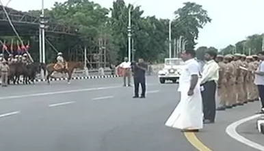 சென்னை காமராஜர் சாலையில் இன்று சுதந்திர தின விழா ஒத்திகை நிகழ்ச்சி தொடங்கியது.