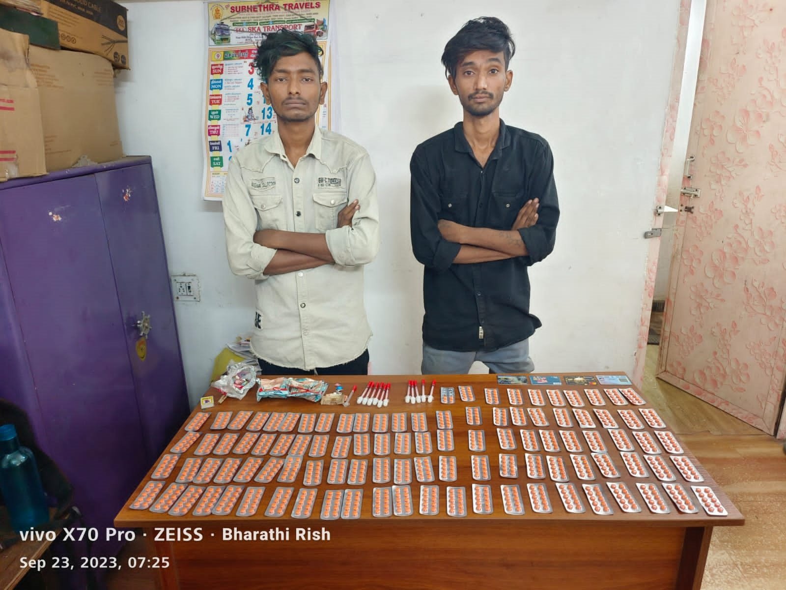 இதையடுத்து அவர்களை சைதாப்பேட்டை குமரன் நகர் போலீசார் கைது செய்து அவர்களிடம் இருந்த 1014 போதை மாத்திரைகள், 12 போதை ஊசிகள், 5 ஹான்ஸ் ஒரு பாக்கெட் கஞ்சா ஆகியவற்றை பறிமுதல் செய்தனர். மேலும் அவர்களிடம் விசாரணை நடத்தி வருகின்றனர்.
