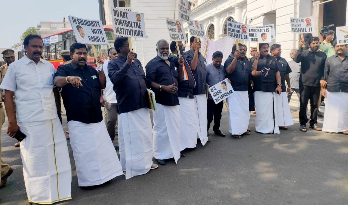 கடந்த வெள்ளிக்கிழமை அவதூறு வழக்கு ஒன்றில் ராகுல் காந்தி குற்றவாளி என நீதிமன்றத்தால் தண்டிக்கப்பட்டு அவரது எம்பி பதவி பறிக்கப்பட்டது. காங்கிரஸ் எம்பி ராகுல் காந்தி தகுதி நீக்கம் செய்யப்பட்டதை கண்டித்து தமிழக காங்கிரஸ் சட்டமன்ற உறுப்பினர்கள் இன்று பேரவைக்கு கருப்பு சட்டை அணிந்து வந்தனர். Stand with Rahul என்ற பதாகையை ஏந்தி சட்டசபை நிகழ்வுகளில் பங்கேற்க வந்தனர். ராகுல் காந்தி தகுதி நீக்கத்தை கண்டித்து இன்று இரவு உள்ளிருப்பு போராட்டத்தை நடத்தவும் காங்கிரஸ் உறுப்பினர்கள் திட்டமிட்டுள்ளனர்.