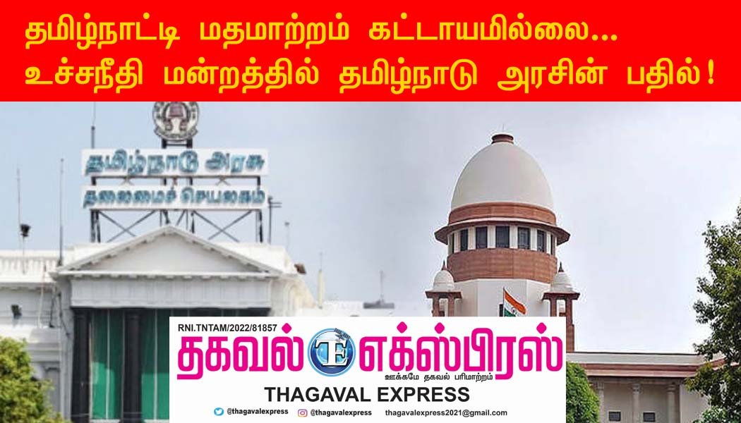 தஞ்சாவூர் பள்ளி மாணவி தற்கொலை வழக்கில் உச்சநீதி மன்றத்தில் தமிழக அரசு பதில் மனு தாக்கல் செய்துள்ளது. அதில், தமிழகத்தில் கட்டாய மதமாற்றம் நடப்பதாக கூறப்பட்வது முற்றிலும் பொய்யான தகவல் என கூறப்பட்டுள்ளது.