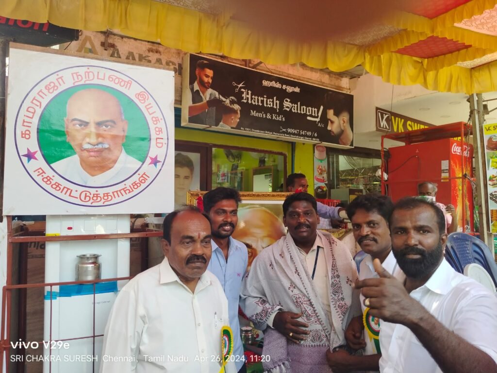 சென்னை ஈக்காடு தாங்கல் பகுதியில் காமராஜர் நற்பணி மன்றம் சார்பாக வெயில் தாக்கம் அதிகமாக இருப்பதால் பொதுமக்களுக்கு நீர் மோர் பந்தல் மற்றும் தர்பூசணி வெள்ளரிப்பிஞ்சு மற்றும் 24 மணி நேரமும் குளிர்ந்த நீர் கிடைக்கும் எந்திரம் அமைக்கப்பட்டு சென்னை லஞ்ச ஒழிப்புத்துறை டிஎஸ்பி உயர்திரு A இமானுவேல் ஞானசேகரன் திறந்து வைக்க காமராஜர் நற்பணி இயக்க நிர்வாகிகளும் ஊர் பொதுமக்களும் அரசியல் பிரமுகர்களும் மற்றும் நண்பர்களும் உடன் இருந்தனர்.