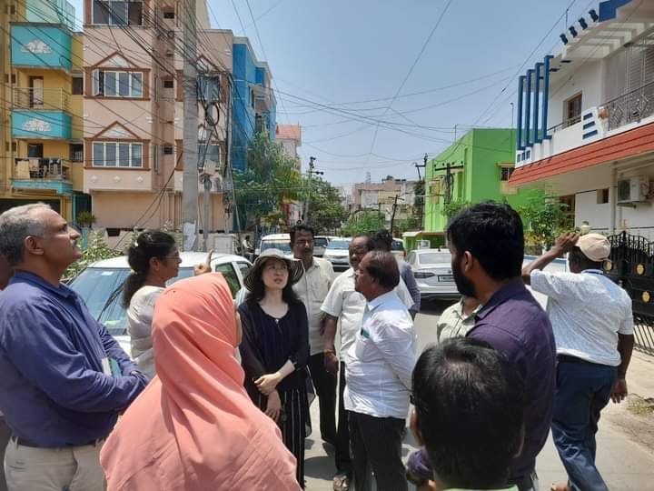 செங்கல்பட்டு மாவட்டம் : பல்லாவரம் வட்டம் குரோம்பேட்டை ராதா நகர் 26 வார்டில் தாம்பரம் மாநகராட்சி சார்பாக உலக வங்கி மூலம் அமைக்கப்பட்ட தார்ச் சாலைகள்‌ மேல்நிலை நீர்த்தேக்க தொட்டிகள் ஆகியவை 2023 மே 31-ல் ஆய்வு செய்ய உலக வங்கியின் பிரதிநிதிகளான திருமதி மன்ஷாசென் திரு கமல்தான் ஆகியோர் வந்திருந்தனர்.