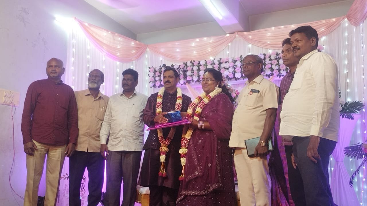 மணமகன் R.முருகானந்தம் MBA மணமகள் S.வித்யாரோஸ்லின் B.E., M.B.A அவர்களின் திருமணம் 1.12.2023 அன்று KGB அருள் சாய் மஹாலில் நடைபெற்றது. இந்த திருமண விழாவிற்கு வருகைதந்த அனைவரையும் சகோதரர்கள் ஐக்கிய மலை ஜெபக்குழு சார்பாக வரவேற்று மணமக்களை வாழ்த்தியபோது எடுத்த படம்.
