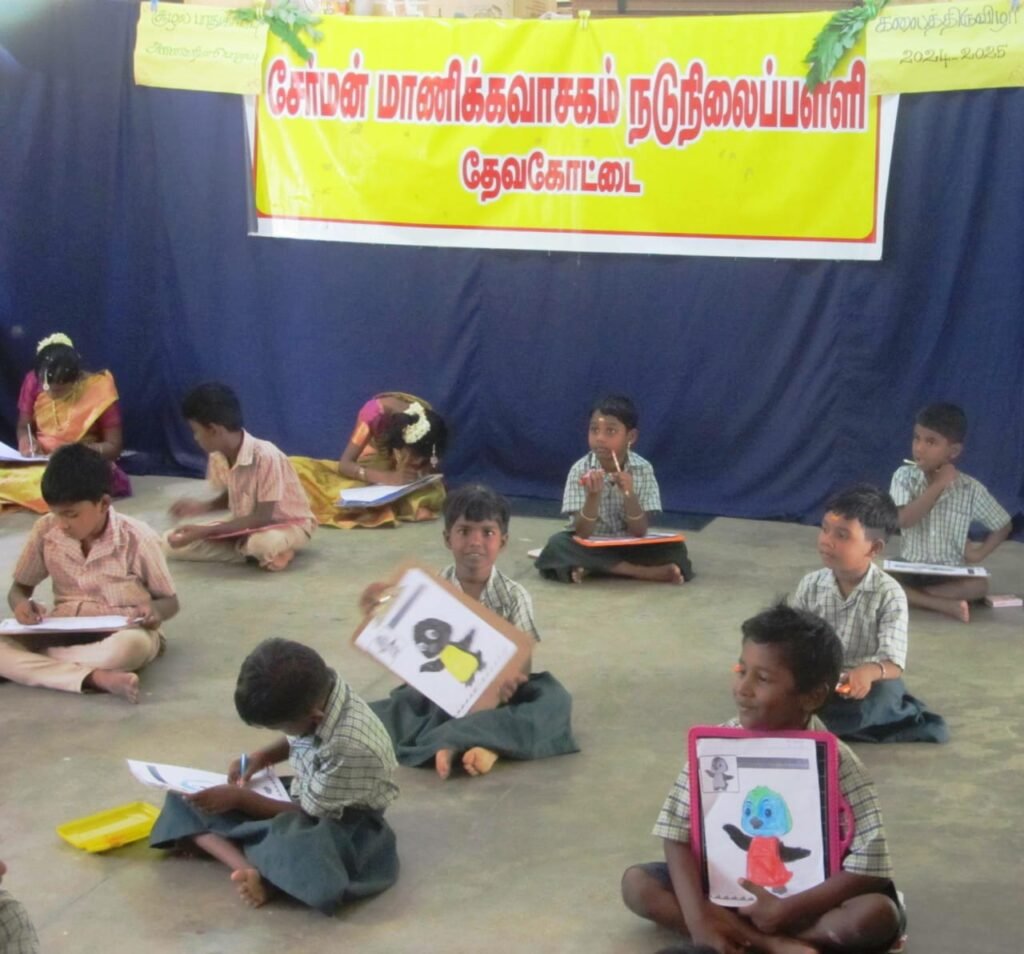 அதில்,தேவகோட்டை சேர்மன் மாணிக்க வாசகம் நடுநிலைப்பள்ளியில், கலைத்திருவிழா போட்டிகள் நடைபெற்றன. தலைமையாசிரியர் லெ .சொக்கலிங்கம் தலைமை வகித்தார்.பிரிவு, ஒன்றில், ஒன்றாம் வகுப்பு, இரண்டாம் வகுப்புக்கும், பிரிவு இரண்டில், 3,4,5 வகுப்புகளுக்கும்; பிரிவு-, மூன்றில், 6,7,8 வகுப்புகள் என போட்டிகள் நடத்தப்பட்டன.