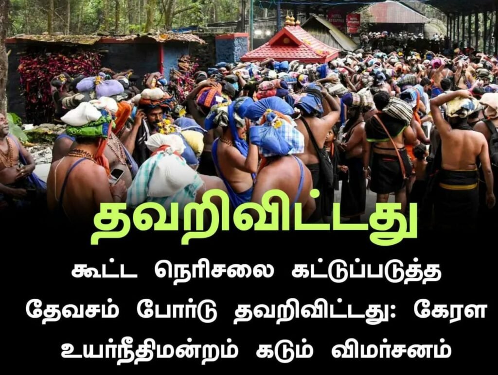 *🔹🔸உயர்நீதிமன்றம் கடும் விமர்சனம்* *தவறிவிட்டது**▪️. கூட்ட நெரிசலை கட்டுப்படுத்த தேவசம் போர்டு தவறிவிட்டது: கேரள உயர்நீதிமன்றம் கடும் விமர்சனம்**▪️. 6 மாதங்களுக்கு முன்பே முன்னேற்பாடுகளை ஏன் செய்யவில்லை?**▪️. சபரிமலை ஐயப்பன் கோவில் கூட்ட நெரிசலில் பெண் உயிரிழந்த விவகாரத்தில் தேவசம் போர்டுக்கு சரமாரி கேள்வி*