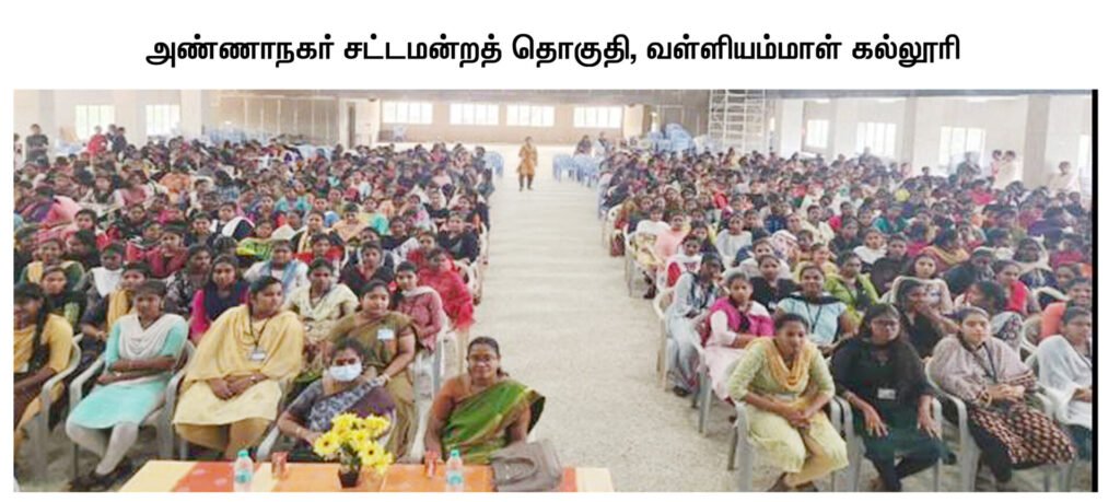 இந்திய தேர்தல் ஆணையத்தின் உத்தரவின்படி, நடைபெறவுள்ள நாடாளுமன்ற பொதுத்தேர்தல் 2024னை முன்னிட்டு, 100% வாக்களிப்பதன் அவசியம் குறித்து பொதுமக்களிடையே விழிப்புணர்வினை ஏற்படுத்தும் வகையில் அண்ணாநகர் சட்டமன்றத் தொகுதிக்குட்பட்ட கல்லூரி மாணவர்களுக்கு தேர்தல் குறித்த கட்டுரைப் போட்டி நடத்தப்பட்டு விழிப்புணர்வு ஏற்படுத்தப்பட்டது.