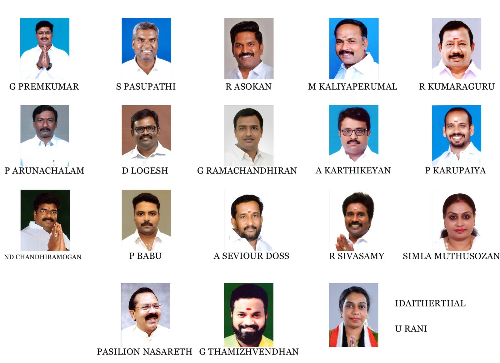 17. புதுச்சேரி (40) : G. தமிழ்வேந்தன், புதுச்சேரி மாநில இளைஞர் பாசறை, இளம் பெண்கள் பாசறைச் செயலாளர்