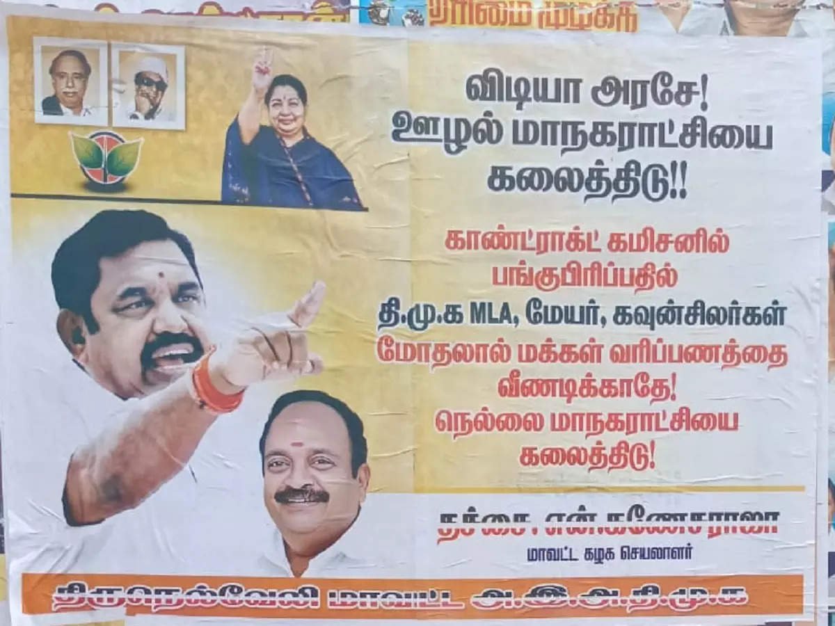 நெல்லை அ.தி.மு.க.வினர்: மாநகராட்சியை கண்டித்து ஒட்டிய போஸ்டர்கள்…!