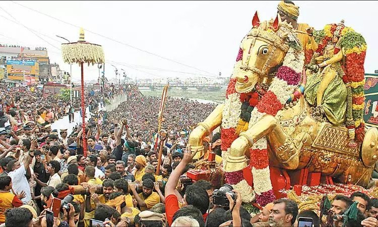 தல்லாகுளத்தில் இருந்து பக்தர்கள் வெள்ளத்தில் மிதந்தபடி ஆழ்வார்புரம் பகுதிக்கு அழகர் வந்தார். அதிகாலை 4 மணிக்கு மதுரை தெற்குவாசல் வீரராகவ பெருமாள் வைகை ஆற்றுக்கு வந்து மண்டகப்படியில் இருந்தார். அவர், தங்கக்குதிரையில் வந்த அழகரை வரவேற்று 3 முறை வலம் வந்தார்.
