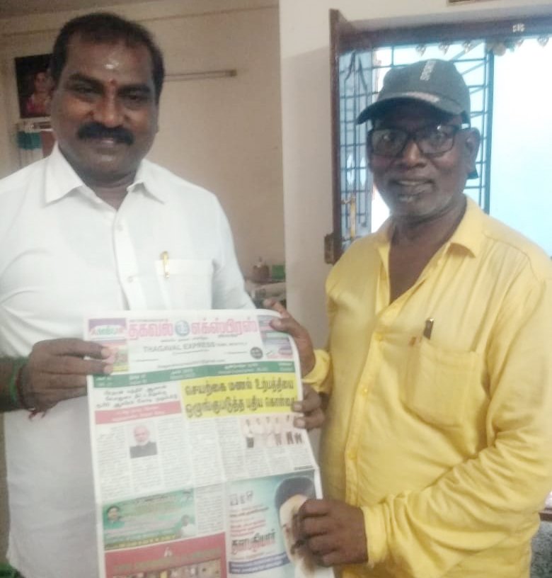 முன்னாள் பல்லாவரம் நகர மன்றத்தில் மூன்றுமுறை தி.மு.க உறுப்பினராகவும், தற்போது தாம்பரம் மாநகராட்சி 35 வது வார்டு மாமன்ற உறுப்பினராக உள்ள சங்கிதா விஜய் மற்றும் வி.மி.ஜி.,விஜயை மரியாதை நிமித்தமாக சந்தித்து தகவல் எக்ஸ்பிரஸ் பத்திரிகையை நமது புகைப்பட கலைஞர் சி.சுகுமார் வழங்கியபோது எடுத்தபடம்.