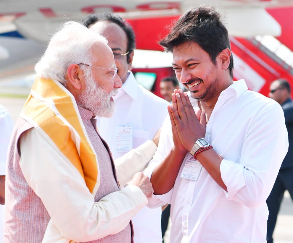 பிரதமர் மோடியை வரவேற்ற அமைச்சர் உதயநிதி ஸ்டாலின்