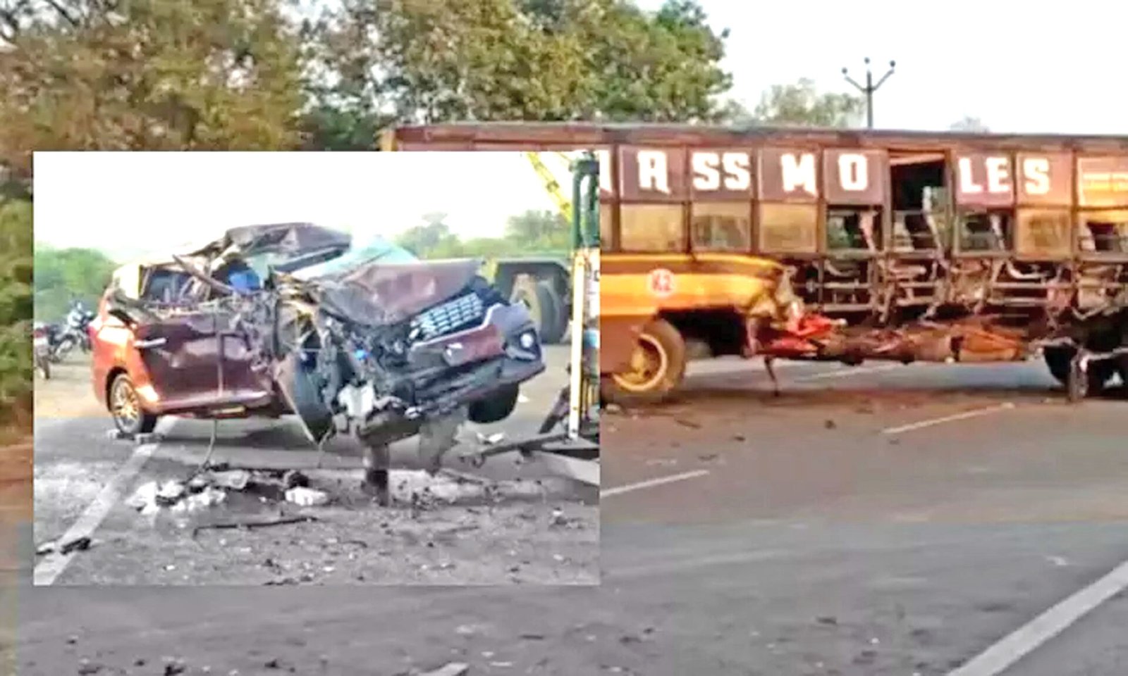 புதுக்கோட்டை சிப்காட் அருகே அரசு பஸ்சும் காரும் நேருக்கு நேர் மோதியதில் காரில் பயணித்த ஒருவர் உயிரிழந்த நிலையில் ஒரு வயது குழந்தை உள்பட 9 பேர் காயம் அடைந்தனர். அதி வேகமாக வந்து மோதியதால் காரும் பஸ்சும் உருக்குலைந்து காணப்பட்டது. விபத்துக்கான காரணம் குறித்து திருக்கோகரணம் போலீசார் விசாரணை நடத்தி வருகின்றனர்.