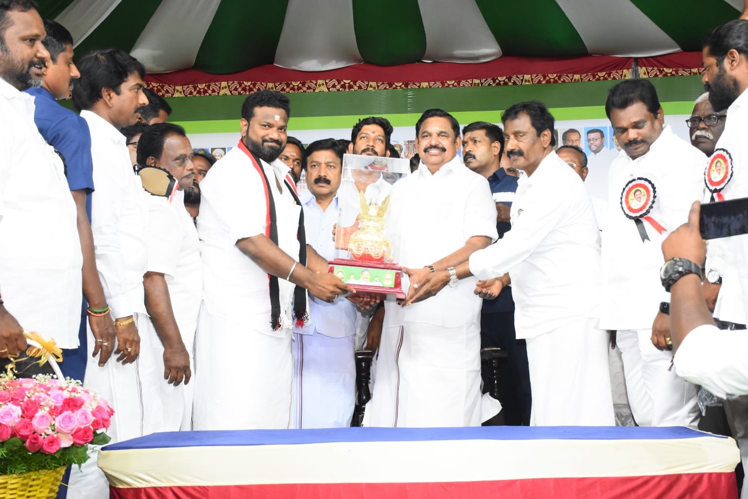 நடைபெற உள்ள நாடாளுமன்ற மக்களவைப் பொதுத் தேர்தலையொட்டி, அ.தி.மு.க. பொதுச் செயலாளரும் சட்டமன்ற எதிர்க்கட்சித் தலைவர் எடப்பாடி K. பழனிசாமி இன்று புதுச்சேரி, உப்பளம், புதிய துறைமுக வளாகத்தில் நடைபெற்ற தேர்தல் பிரச்சாரப் பொதுக்கூட்டத்தில், புதுச்சேரி தொகுதியில் போட்டியிடும் வேட்பாளர் G. தமிழ்வேந்தனுக்கு இரட்டை இலை சின்னத்தில் வாக்களித்து, அவரை மகத்தான வெற்றி பெறச் செய்திடுமாறு தேர்தல் பிரச்சாரம் மேற்கொண்டார்.