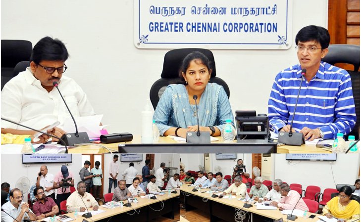 இன்று மேயர் ஆர்.பிரியா தலைமையில் வடகிழக்குப் பருவமழையினை முன்னிட்டு பெருநகர சென்னை மாநகராட்சிக்குட்பட்ட பகுதிகளில் மேற்கொள்ளப்பட்டுள்ள வரும் நடவடிக்கைகள் குறித்தும் வங்ககடலில் உருவாகியுள்ள புயல் சின்னத்தின் தாக்கத்தை எதிா்கொள்ளும் வகையில் மேற்கொள்ளப்பட்டுள்ள முன்னெச்சரிக்கை நடவடிக்கைகள் குறித்தும் மண்டல கண்காணிப்பு அலுவலர்கள் மற்றும் மண்டல அலுவலா்களுடன் காணொலி வாயிலாக ஆய்வுகூட்டம் ரிப்பன் கட்டட அலுவலகக் கூட்டரங்கில் நடைபெற்றது. இக்கூட்டத்தில் துணை மேயர் மு.மகேஷ்குமார், கூடுதல் தலைமை செயலாளர்/ஆணையர் ஜெ.ராதாகிருஷ்ணன், கூடுதல் ஆணையர் (வருவாய் (ம) நிதி) ஆர்.லலிதா இணை ஆணையாளர் (பணிகள்), ஜி.எஸ்.சமீரன் மண்டலக் கண்காணிப்பு அலுவலர்கள், தலைமை பொறியாளர்கள், மண்டல அலுவலர்கள் உள்ளிட்ட அலுவலர்கள் கலந்து கொண்டனர்.