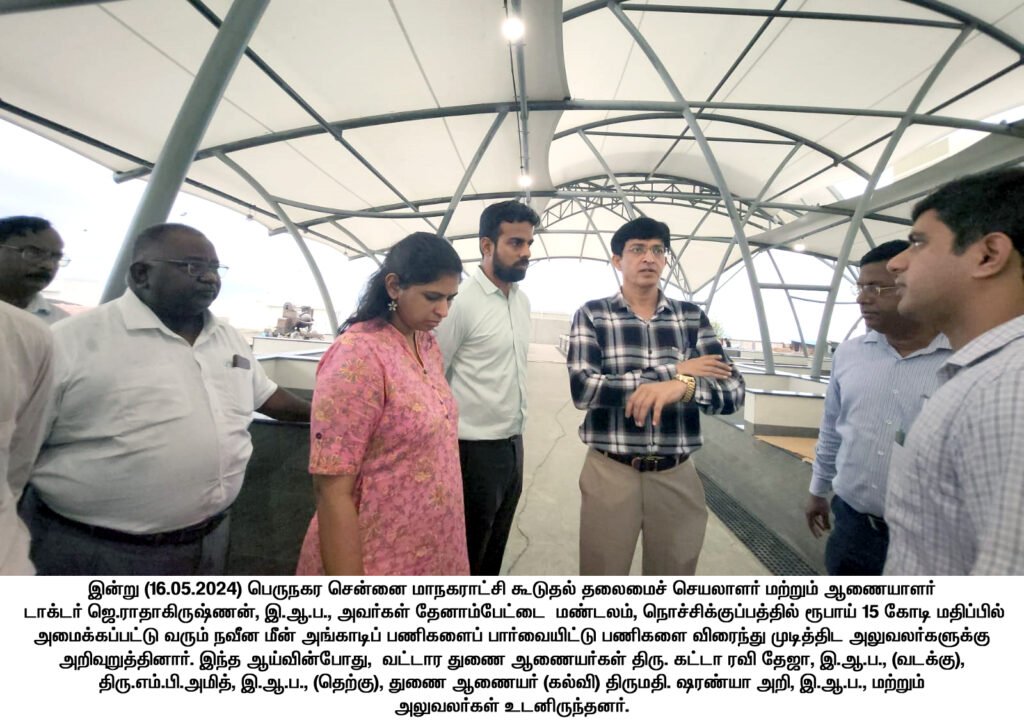 பெருநகர சென்னை மாநகராட்சி கூடுதல் தலைமைச் செயலாளர் மற்றும் ஆணையாளர் டாக்டர் ஜெ.ராதாகிருஷ்ணன், இ.ஆ.ப., அவர்கள் செயல்பாட்டில் உள்ள பூங்காக்கள், மியாவாக்கி காடு, பொது கழிப்பிடங்கள் ஆகியவற்றின் பராமரிப்பு மற்றும் நொச்சிக்குப்பத்தில் நடைபெற்று வரும் நவீன மீன் அங்காடி அமைக்கும் பணிகள் ஆகியவற்றினைப் பார்வையிட்டு ஆய்வு மேற்கொண்டார்.