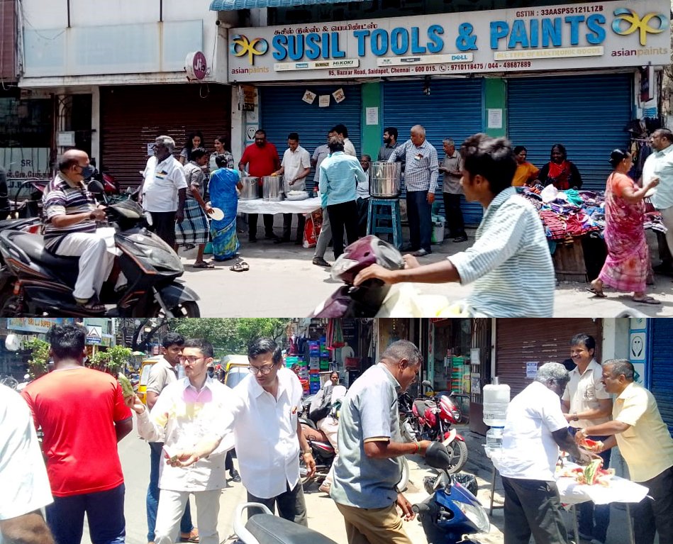 மகாவீரர் ஜெயந்தியை முன்னிட்டு சென்னை சைதாப்பேட்டை பஜார் தெருவில் உள்ள சுசீல் டூல்ஸ அண்டு பெயிண்ட் நிறுவனம் சார்பில் பொதுமக்களுக்கு அன்னதானம், நீர்மோர், பழங்கல் வழங்கப்பட்டது.