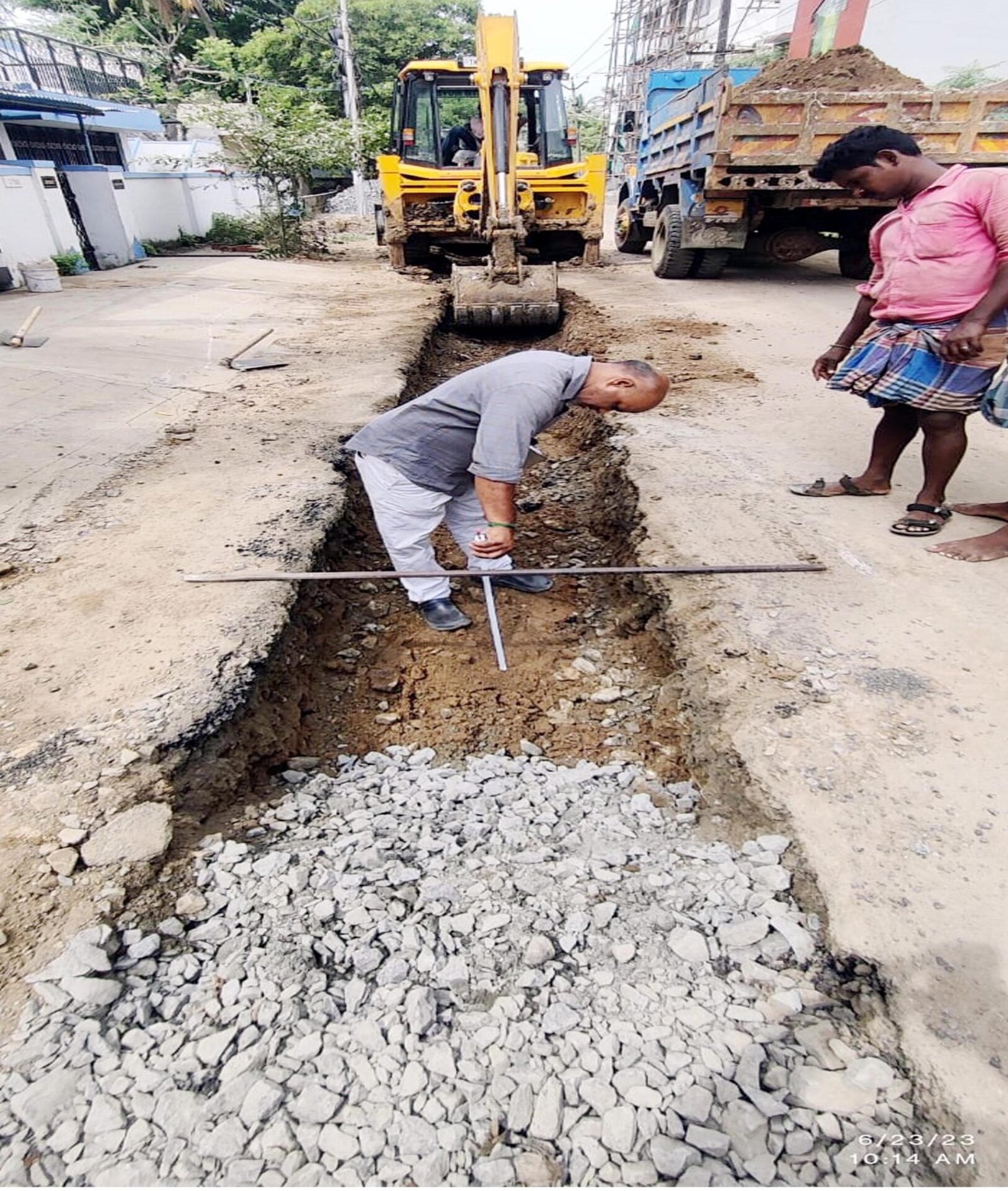சென்னை மாநகராட்சி பெருங்குடி மண்டலம் வாா்டு 187 மடிப்பாக்கம் காா்திகேயபுரத்தில் பாதாள சாக்கடை குழாய் பதிக்கும் முடிவுற்ற நிலையில் புதிதாக சாலை அமைக்கும் பணி நடைபெற்று வருகிறது.