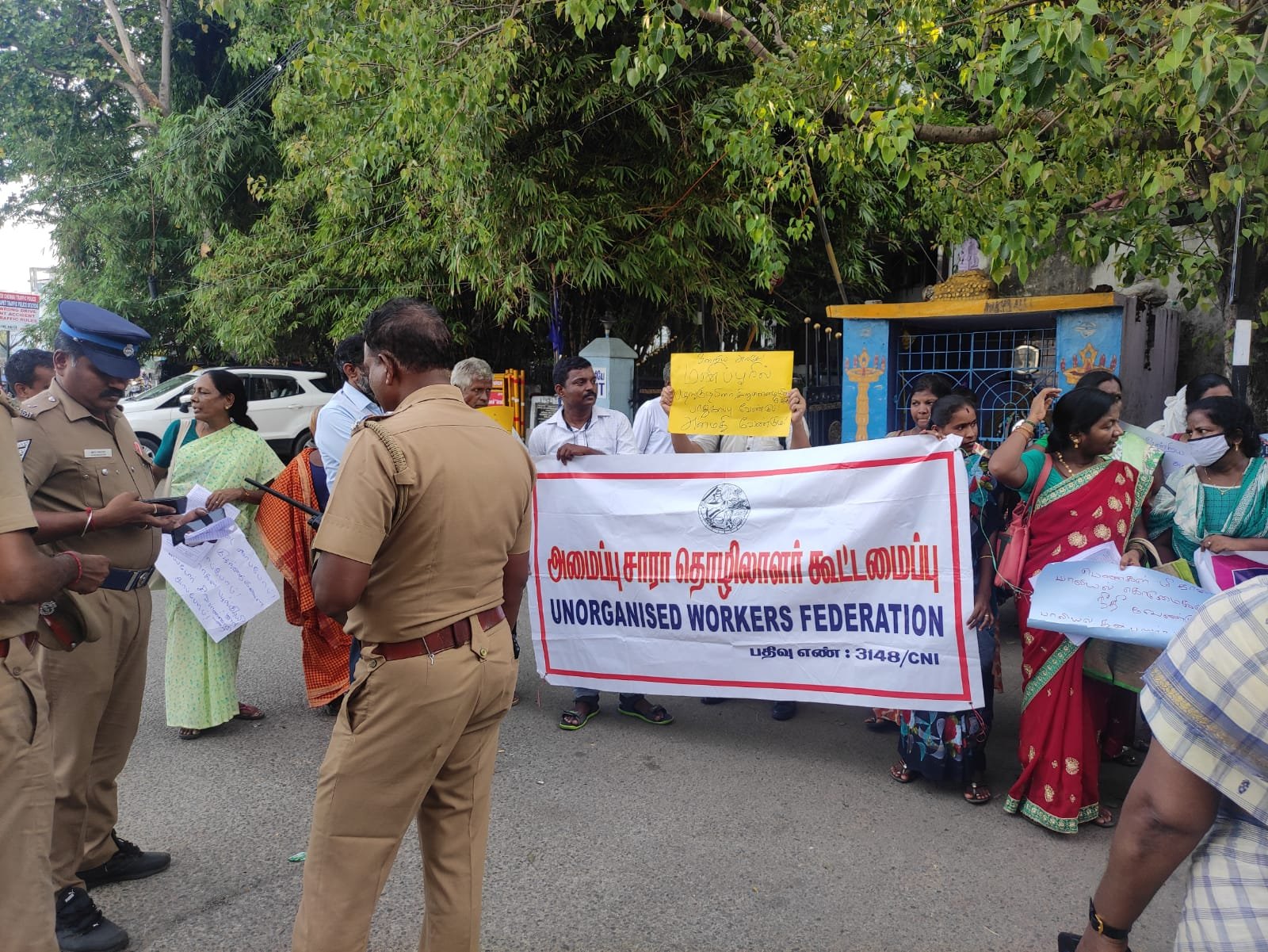 அமைப்பு சாரா தொழிலாளர் கூட்டமைப்பு மணிப்பூர் சிறுபான்மை மக்கள் மீது திணிக்கப்படும் விசம பிரச்சாரத்தை பாதுகாக்க கோரி சென்னை, சைதாப்பேட்டையில் (கலைஞர் வளைவு) நேற்று ஆர்பாட்டம் நடத்தினர்.