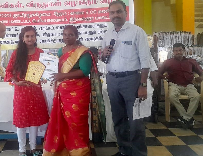 இந்த விழாவில் ராமநாதபுரம் மாவட்டத்தை சேர்ந்த 9ம் வகுப்பு மாணவி ஜெ.முகிலாவிற்கு இளம் சாதனையாளர் விருது வழங்கப்பட்டது.