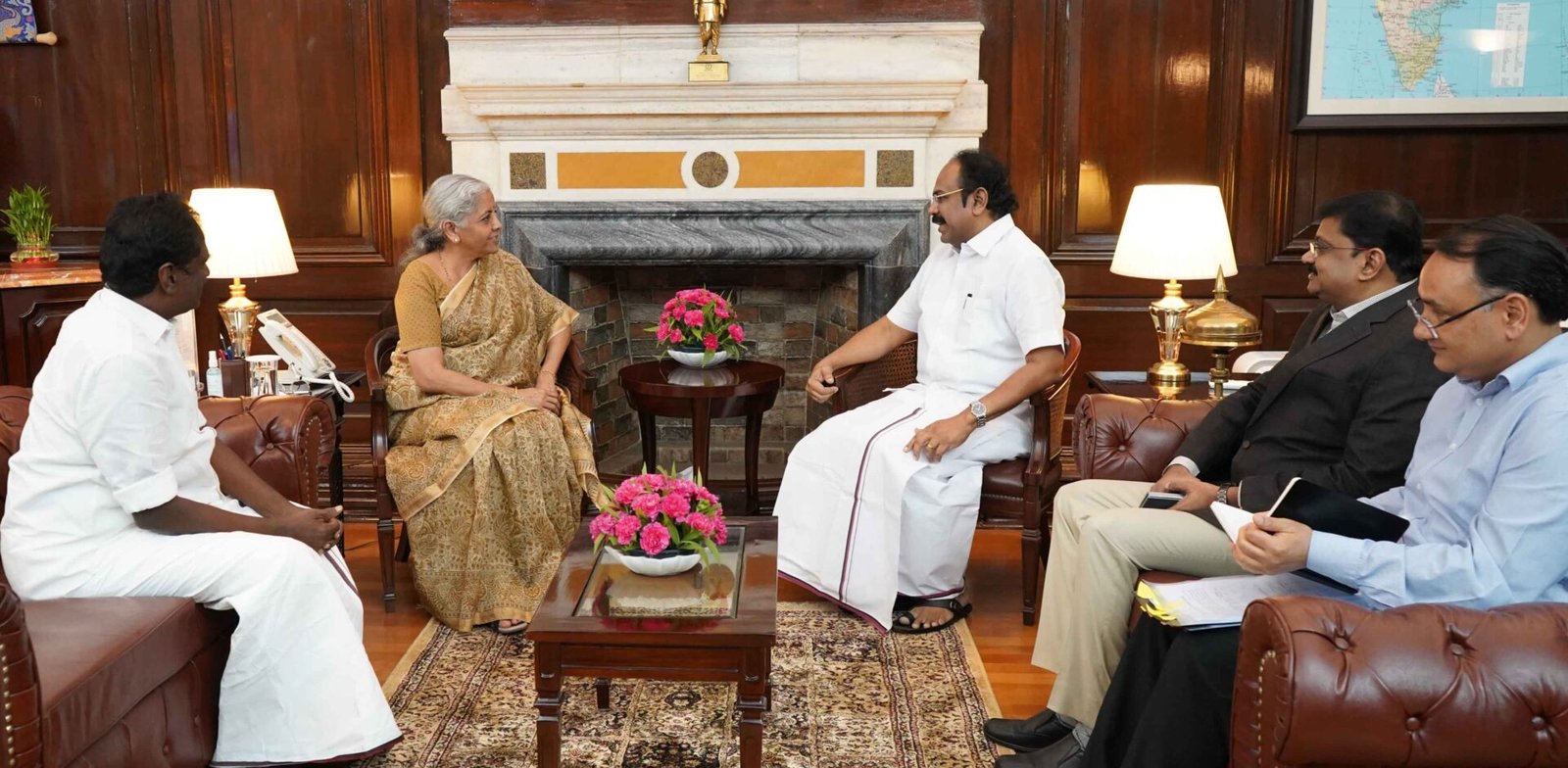 புதுதில்லியில் நேற்று (10.07.2023) ஒன்றிய அரசின் நிதித்துறை அமைச்சர் திர் சீதாராமன் நிதி, மின்சாரம் மற்றும் மனித வள மேலாண்மை துறை அமைச்சர் தங்கம் தென்னரசு வை சந்தித்து பேசினார் இந்நிகழ்வின்போது, தமிழ்நாடு அரசின் தில்லி சிறப்பு பிரதிநிதி ஏ.கே.எஸ்.விஜயன், நிதித்துறை முதன்பைச் செயலாளர் த.உ தனசந்திரன், தமிழ்நாடு இல்லம் முதன்ண உள்ளுறை ஆணையர் ஆஷிஷ் சாட்டர்ஜி, மற்றும் துணை செயலாளர் (வரவு செலவர் பிரதிக் தயான் ஆகியோர் உடனிருந்தார்