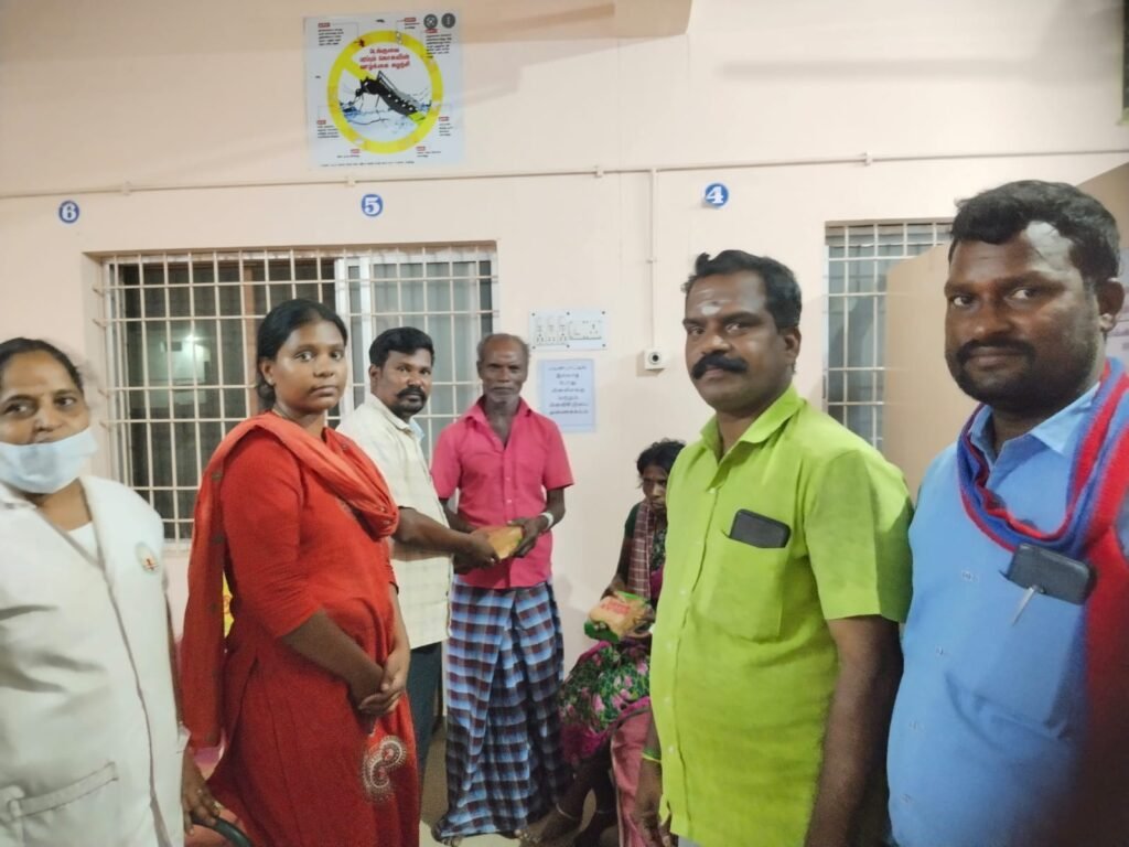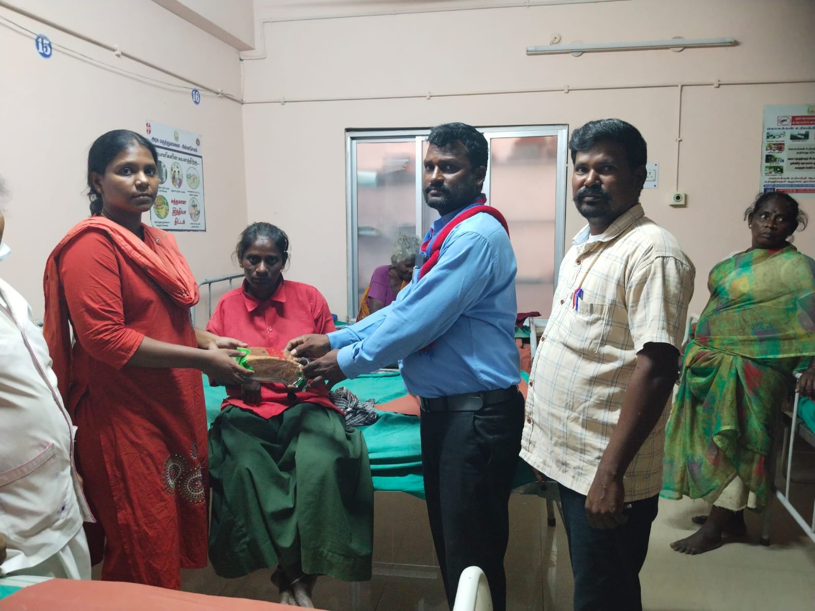 மருத்துவமனையில் இருந்தவர்களை நலம் விசாரித்து அவர்களுக்கு இரவு உணவாக பிரட் டிபன் வழங்கப்பட்டது
