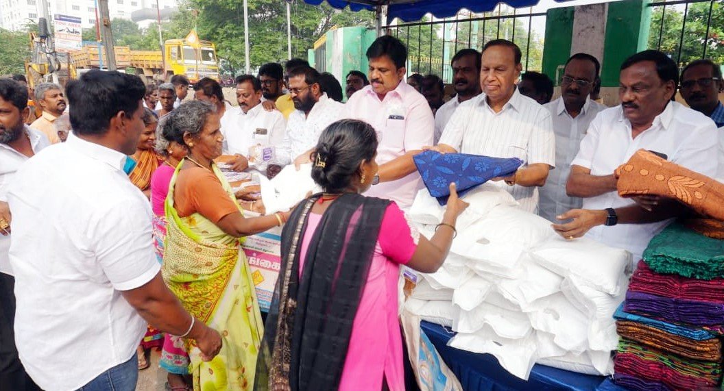ஸ்ரீபெரும்புதூர் நாடாளுமன்ற உறுப்பினர் டி.ஆர்.பாலு நிவாரண பொருட்களை வழங்கினார்