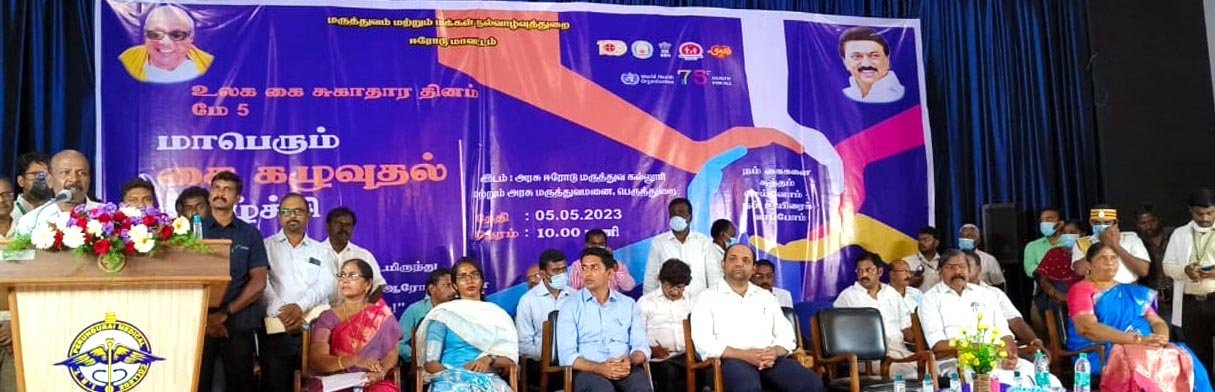 ஈரோடு மாவட்டம், பெருந்துறை, அரசு ஈரோடு மருத்துவ கல்லூரி மருத்துவமனையில் நேற்று உலக கை சுகாதார தினத்தை முன்னிட்டு மாபெரும் கை கழுவுதல் நிகழ்ச்சி, மாவட்ட ஆட்சித்தலைவர; திரு.ஹெச்.கிருஷ்ணனுண்ணி இஆப., அவர;கள், மாண்புமிகு ஈரோடு மாநகராட்சி மேயர; திருமதி.சு.நாகரத்தினம் அவர;கள் மற்றும் அந்தியூர் சட்டமன்ற உறுப்பினா; திரு.ஏ.ஜி.வெங்கடாசலம் அவர;கள் ஆகியோர்; முன்னிலையில் மாண்புமிகு மருத்துவம் மற்றும் மக்கள் நல்வாழ்வுத்துறை அமைச்சார் திரு.மா.சுப்பிரமணியன் அவர்கள் தலைமையில் நடைபெற்றது.