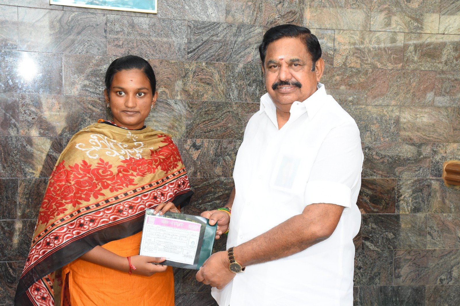 மாண்புமிகு எடப்பாடியார் அவர்களை சேலம் நெடுஞ்சாலை நகரில் உள்ள அவரது இல்லத்தில், ஈரோடு மாவட்டம், கருங்கல்பாளையத்தை சேர்ந்த மாணவி எம்.விஷ்ணுபிரியா, கருங்கல்பாளையம் மாநகராட்சி மகளிர் மேல்நிலைப் பள்ளியில் பயின்று, மெட்ராஸ் அரசு மருத்துவக் கல்லூரியில் 7.5.% சதவீத உள் இட ஒதுக்கீட்டில் மருத்துவம் படிப்பதற்காக வாய்ப்பைப் பெற்றதற்காக நேரில் சந்தித்து 7.5 % சதவீத உள் இட ஒதுக்கீடு ஏற்படுத்திக் கொடுத்ததற்கு நன்றி தெரிவித்து, வாழ்த்து பெற்றார்.