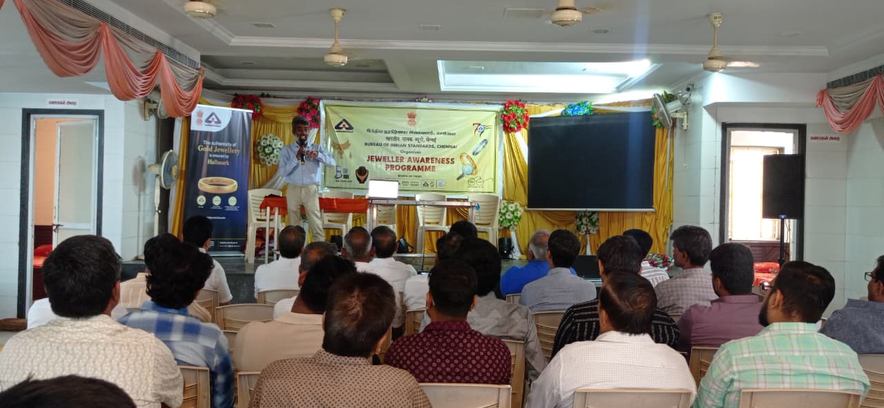 Bureau of Indian Standards (BIS), organised a Jeweller Awareness Programme on Hallmarking today at Avadi, for the benefit of jewellers in Thiruvallur District. As Thiruvallur is a non-mandatory district under the Hallmarking Regulations, the programme was specifically organised to enhance awareness among jewellers on BIS Hallmarking standards, regulatory requirements and the digital services offered by BIS for voluntary compliance and registration process.