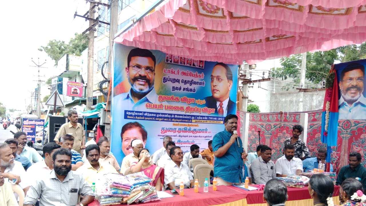கோட்டக்குப்பம் Dr.அம்பேத்கர் துப்புறவு தொழிலாளர் நல சங்கம் திறப்பு விழாவில் விழுப்புரம் நாடாளுமன்ற உறுப்பினர் துரை.ரவிகுமார். M.P கலந்து கொண்டார், உடன் மண்டல துணை செயலாளர், இரணியன் ,VCK மாவட்ட செயலாளர் வீர.பொன்னிவளவன், ஒன்றிய செயலாளர் கலைமாறன், ஒன்றிய கவுன்சிலர் கல்பனா பொன்னிவளவன், கோட்டக்குப்பம் நகர நிர்வாகிகள், V.காளிதாஸ் நகர.து.செயலாளர் விசிக.