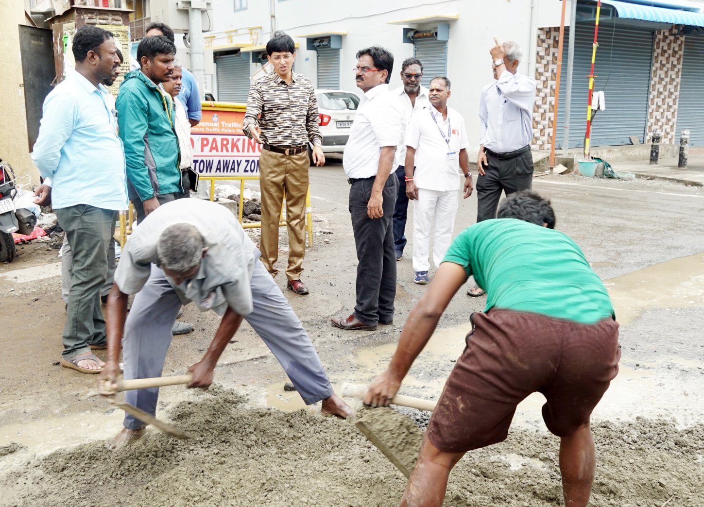 பெருநகர சென்னை மாநகராட்சி, தேனாம்பேட்டை மண்டலம், வார்டு-111க்குட்பட்ட உட்ஸ் சாலையில் மேற்கொள்ளப்பட்டு வரும் சாலை சீரமைப்புப் பணிகளை கூடுதல் தலைமைச் செயலாளர்/ஆணையாளர்