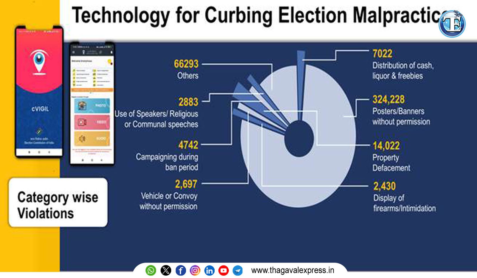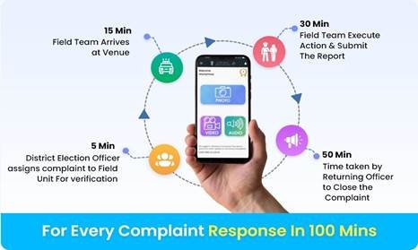 Over 4.24 lakh complaints have been received from cVigil in the last two months; 99.9% of the cases have been resolved. Flying squads rush to the location of the violation in minutes.