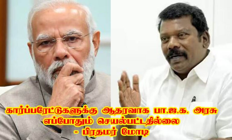 கார்ப்பரேட்டுகளுக்கு ஆதரவாக பா.ஜ.க. அரசு எப்போதும் செயல்பட்டதில்லை – பிரதமர் மோடி : காங்கிரஸ் கமிட்டி தமிழ்நாடு தலைவர் கு. செல்வப்பெருந்தகை பதில்…! Read More » 02/04/2024
