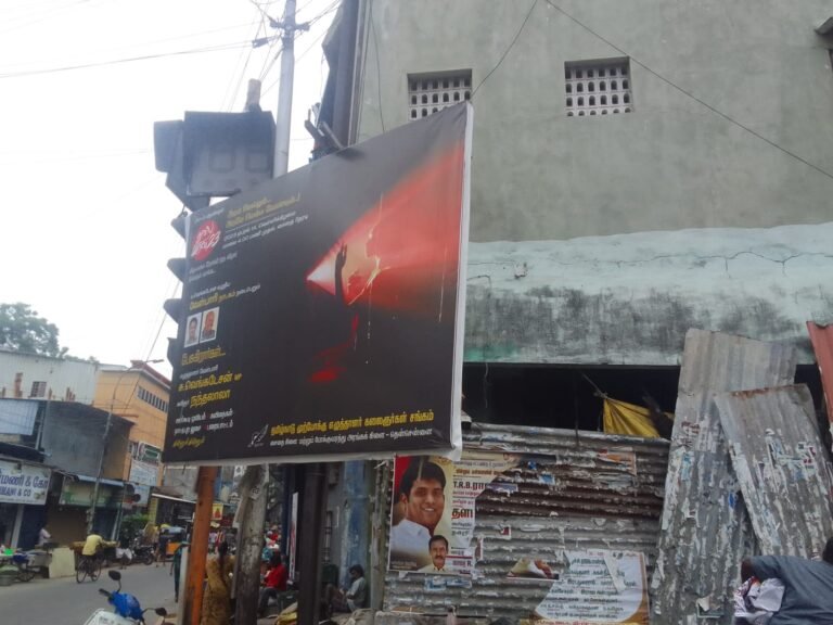 மின்கம்ப்த்தில் கட்டப்பட்ட விளம்பரம் பலகை : எப்போது அறுந்து விழும் அச்சத்தில் பொதுமக்கள் Read More » 13/05/2023